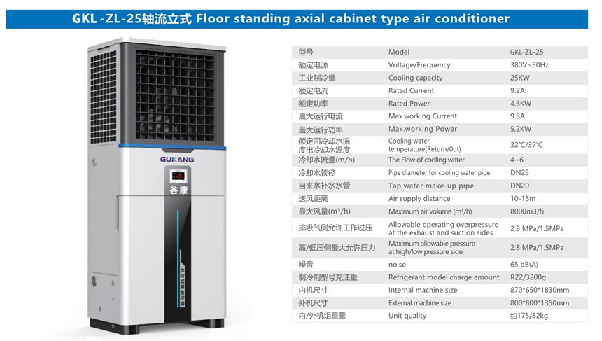 GKL-ZL-25A軸(zhóu)流(liú)立(lì)式蒸發冷高效空調機組